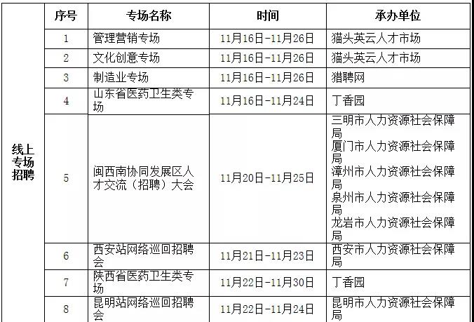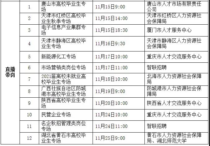 近期,人力资源社会保障部2021年大中城市联合招聘高校毕业生秋季专场活动将推出第五批20场线上特色服务活动,包括管理营销、文化创意、制造业、山东省医药、陕西省医药、闽西南协同发展区、西安站、昆明站等8场线上专场招聘会和12场直播带岗。截至11月11日,已有7679家用人单位提供约5.4万个岗位,后期将有更多用人单位陆续加入。