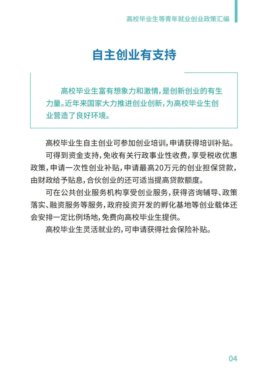 为贯彻落实党中央、国务院关于高校毕业生就业创业工作的决策部署,教育部高校学生司会同相关部门编印了《高校毕业生等青年就业创业政策汇编》,帮助广大高校毕业生和用人单位知晓政策、享受政策,更好助力高校毕业生就业创业。一起来看——
