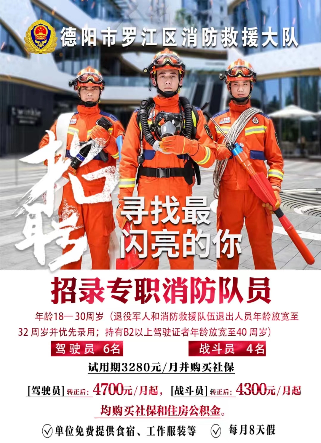 招录公告 | 德阳消防面向社会招录专职消防队员
