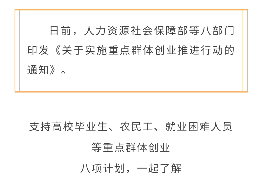 支持高校毕业生、农民工等重点群体创业!八项计划,点击了解→