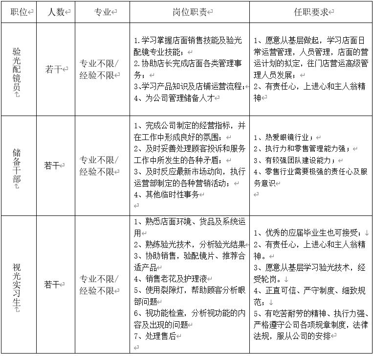 四川大光明集团是四川省知名的眼镜零售连锁企业,公司为培养一批眼镜连锁行业专业人士,企业优秀管理者,特诚招以下英才: