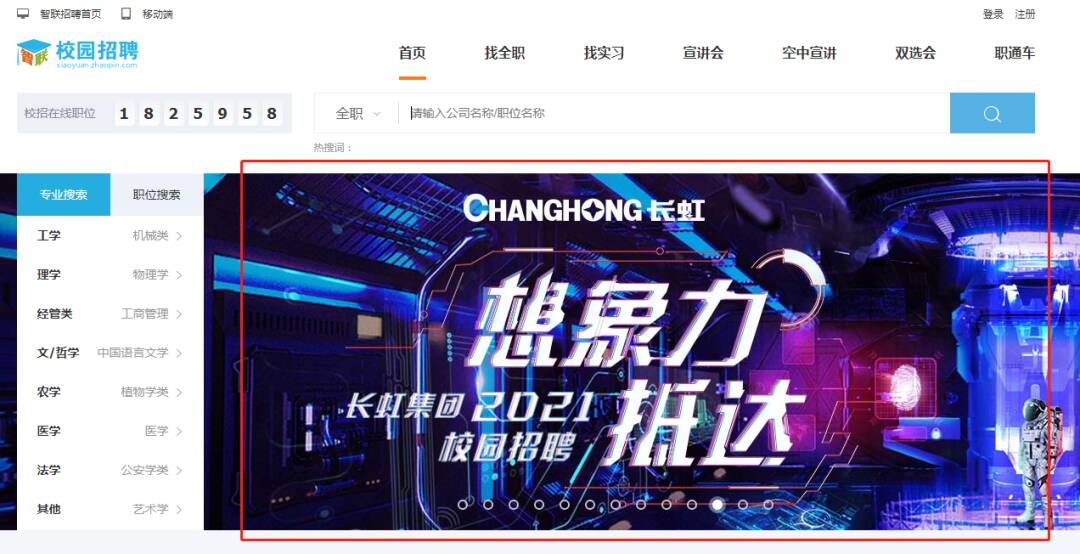 关注官方微信“长虹招聘”→点击校园招聘专栏→