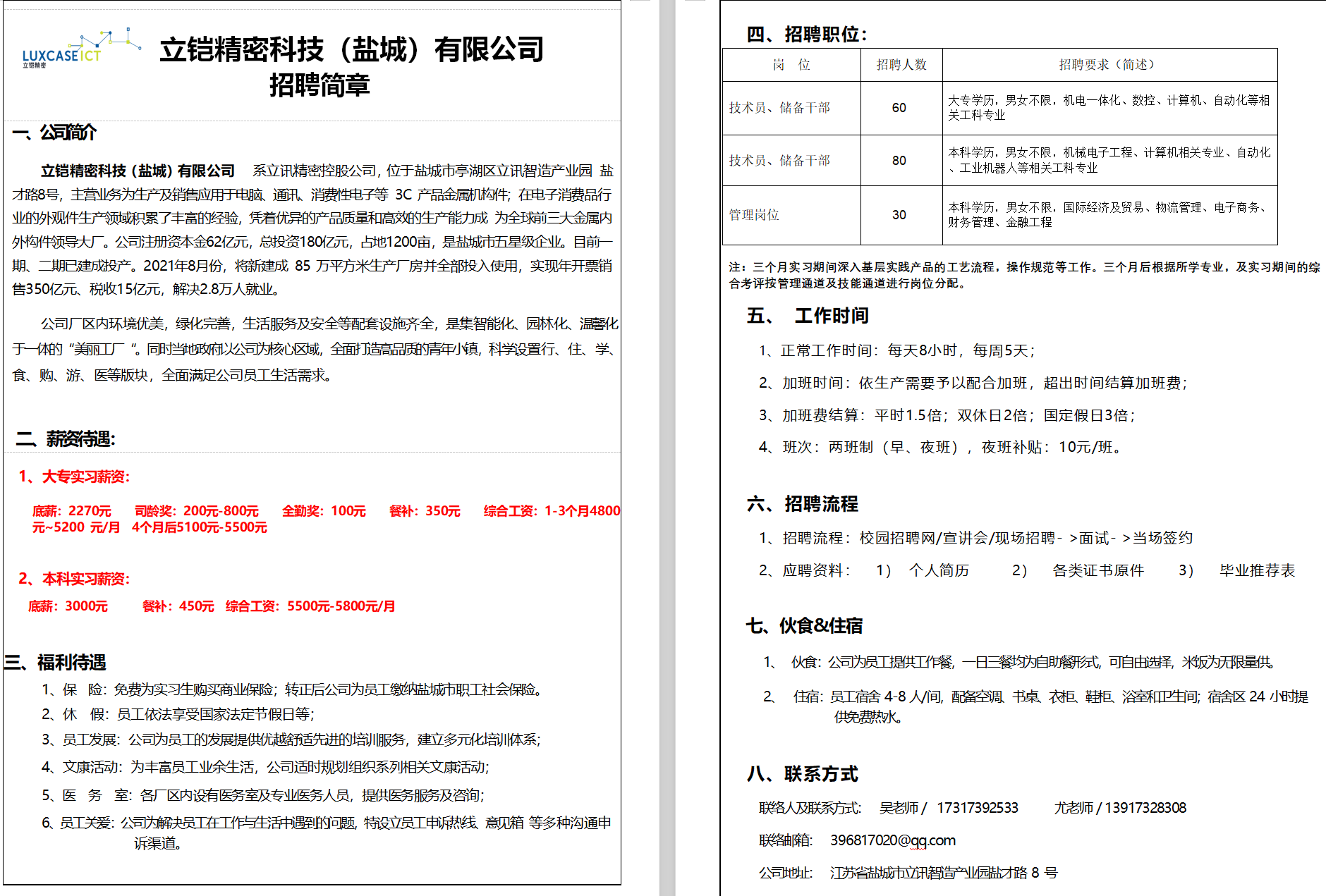 【双选会企业推介】立铠精密科技(盐城)有限公司招聘简章