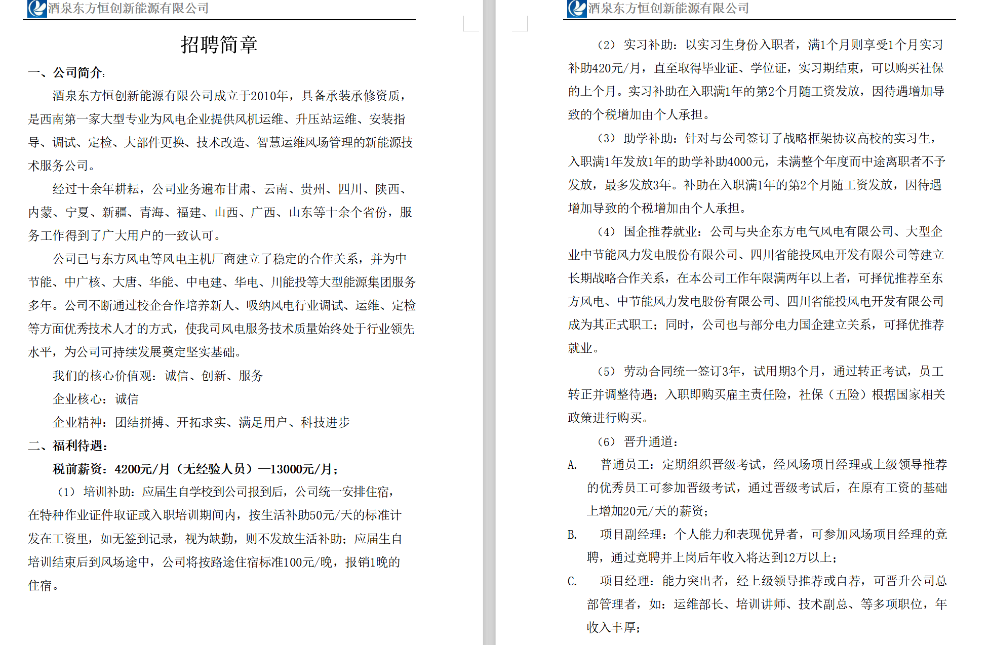 【双选会企业推介】酒泉东方恒创新能源有限公司