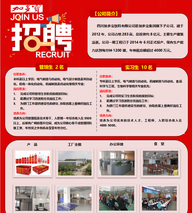 【空中宣讲企业推送】四川加多宝招聘简章