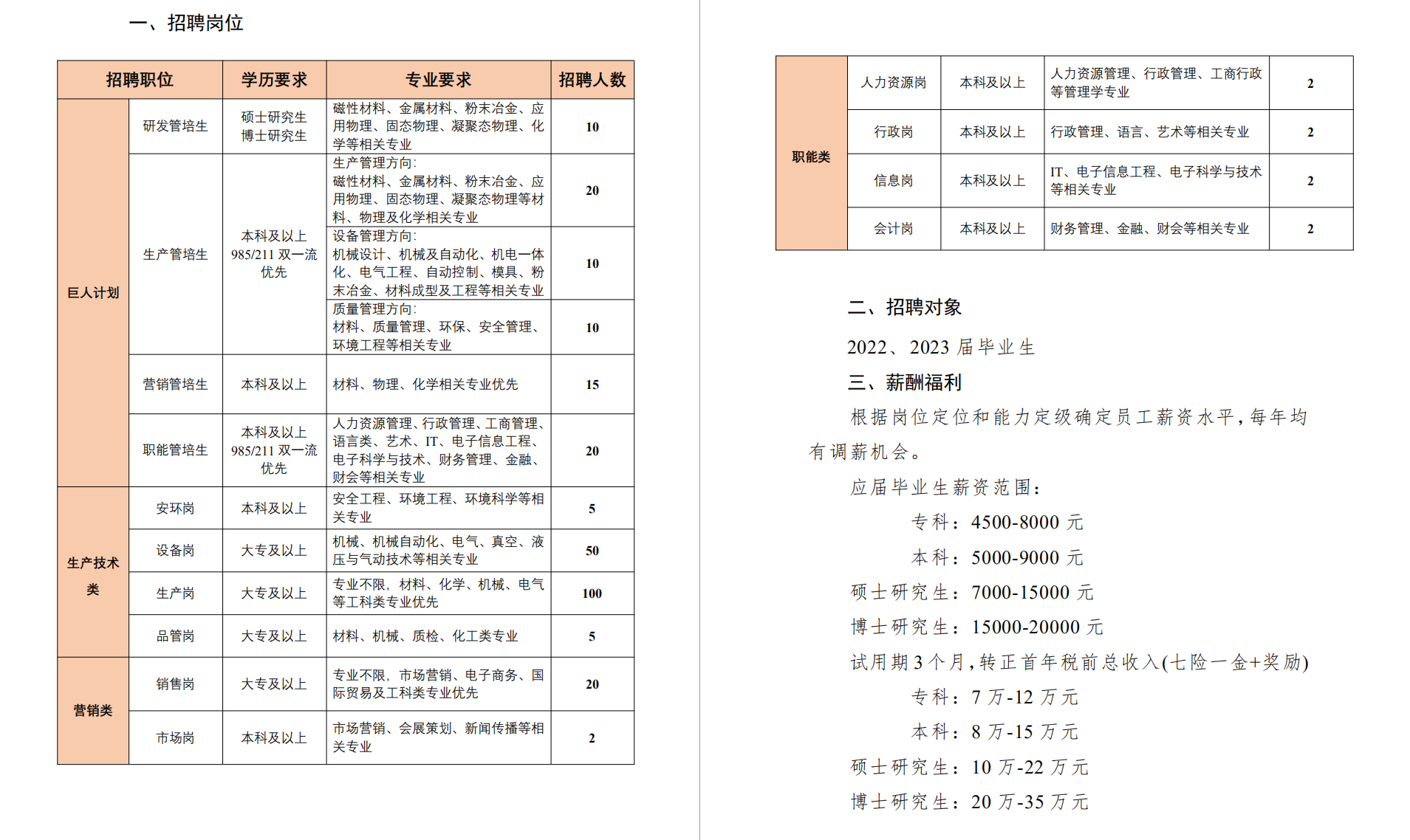 巨星稀土永磁新材料产业项目是绵阳市今年招商引资第三个百亿级重点项目之一,计划分三期开发,一期预计 2023年达产 25000 吨产能;二期预计 2025 年达产 25000 吨产能;三期预计 2028 年达产 50000 吨产能。项目一期占地约 800亩,将包括中国西南稀土研究院、稀土技术创新中稀土磁性材料创新中心、稀土永磁电机总成创新中心等 6 个研发创新平台,形成“研究院+中试基地+产业园区”的协同发展模式。项目全部建成投产后,年均产值预计达 350 亿元,年纳税 10亿元。与此同时,规划占地 7000 余亩的巨星永磁小镇,由产业项目、城市公园、配套生活区组成,建成后将是全球首创的磁材小镇,产城一体化规模可达 10 万人。绵阳,将成为首屈一指的磁材之都。巨星永磁始终坚持将经济效益与社会效益置于企业可持续发展天平之上,勇担社会责任,敢于担当、敢于负责、敢于作为,公司上下将高质高效地推进项目建设,打造精品工程,为绵阳磁材小镇树立首航标杆。“聚四海精英,创百年巨星”,欢迎广大精英人才的加入!