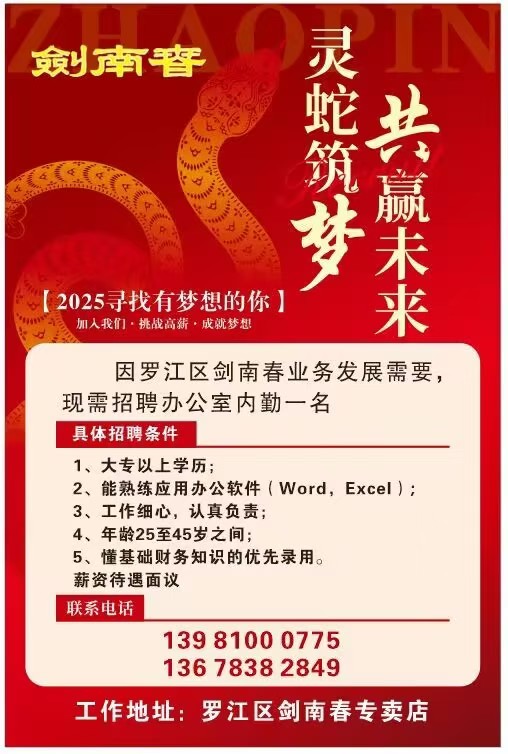 发布时间:2025-02-18 来源:招生就业处 作者:剑南春