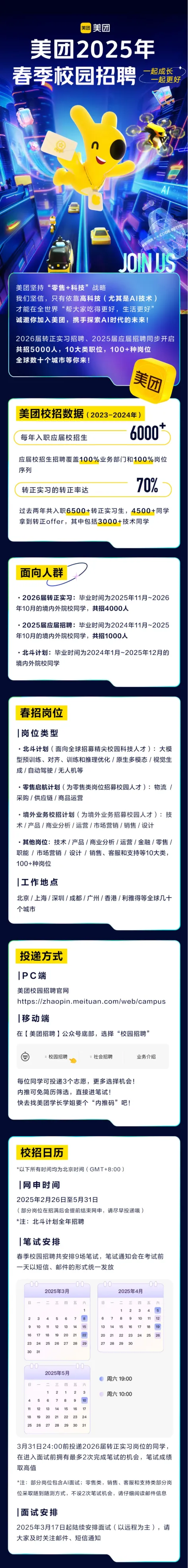发布时间:2025-03-04 来源:招生就业处 作者:美团