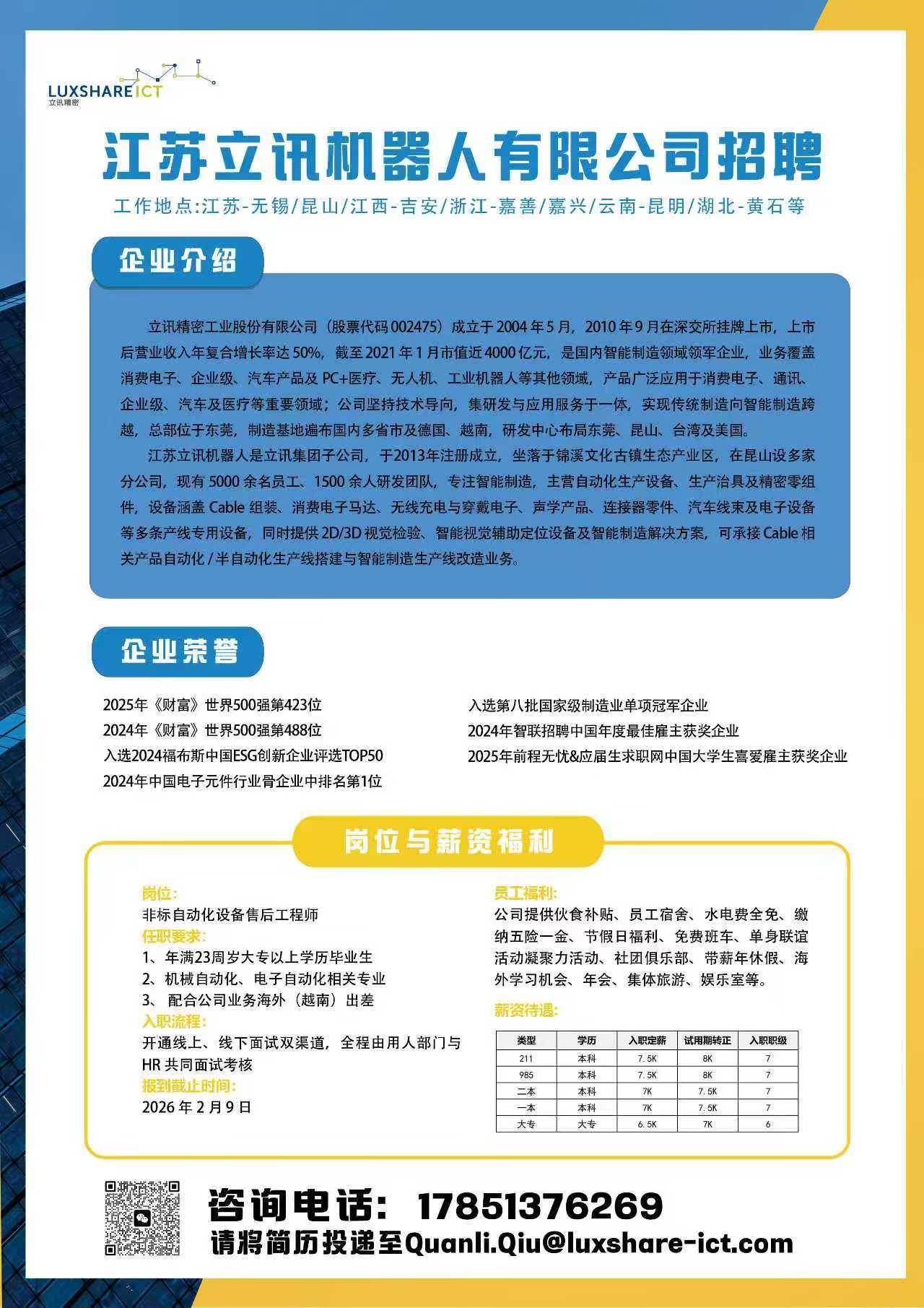 发布时间:2025-12-29   来源:招生就业处   作者:江苏立讯机器人有限公司