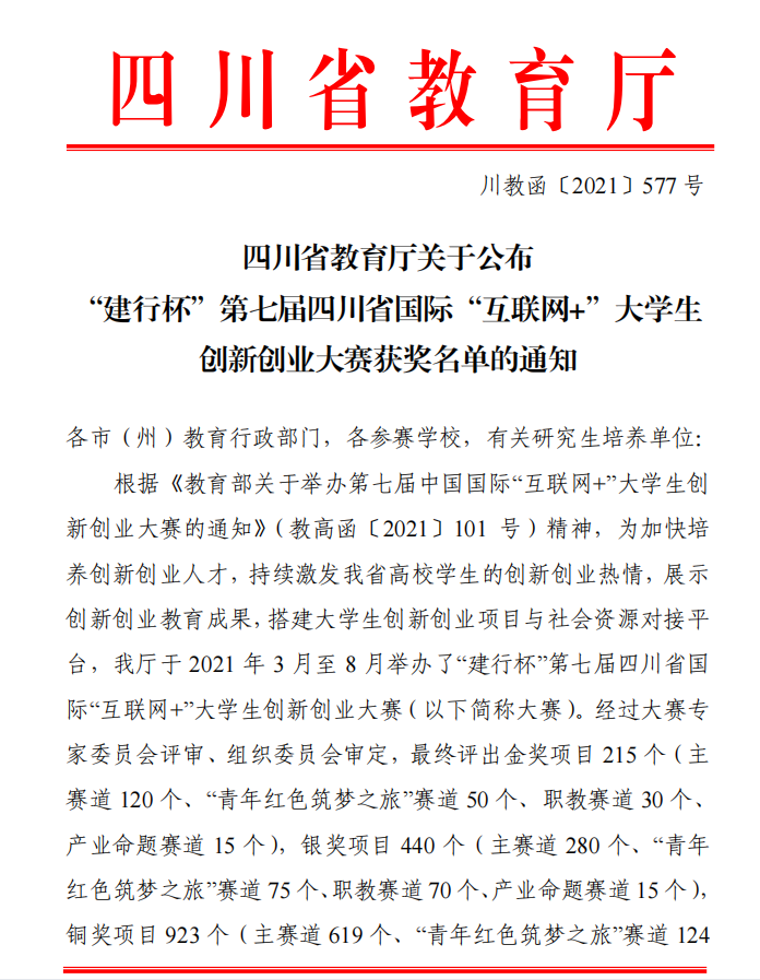 我校荣获第七届四川省国际“互联网+”大学生创新创业大赛铜奖
