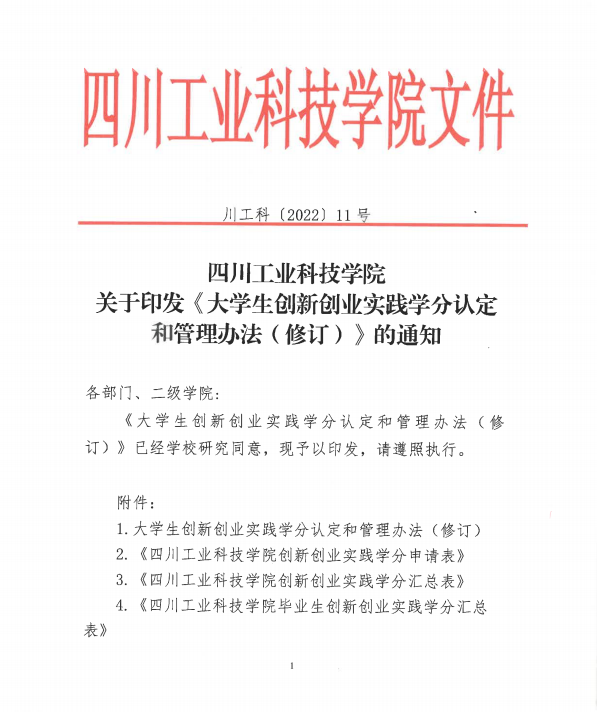 四川工业科技学院关于印发《大学生创新创业实践学分认定和管理办法(修订)》的通知(2020级和2021级适用)