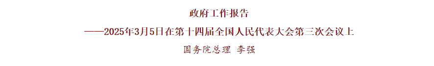 今年是“十四五”规划收官之年。做好政府工作,要在以习近平同志为核心的党中央坚强领导下,以习近平新时代中国特色社会主义思想为指导,全面贯彻落实党的二十大和二十届二中、三中全会精神,按照中央经济工作会议部署,坚持稳中求进工作总基调,完整准确全面贯彻新发展理念,加快构建新发展格局,扎实推动高质量发展,进一步全面深化改革,扩大高水平对外开放,建设现代化产业体系,更好统筹发展和安全,实施更加积极有为的宏观政策,扩大国内需求,推动科技创新和产业创新融合发展,稳住楼市股市,防范化解重点领域风险和外部冲击,稳定预期、激发活力,推动经济持续回升向好,不断提高人民生活水平,保持社会和谐稳定,高质量完成“十四五”规划目标任务,为实现“十五五”良好开局打牢基础。