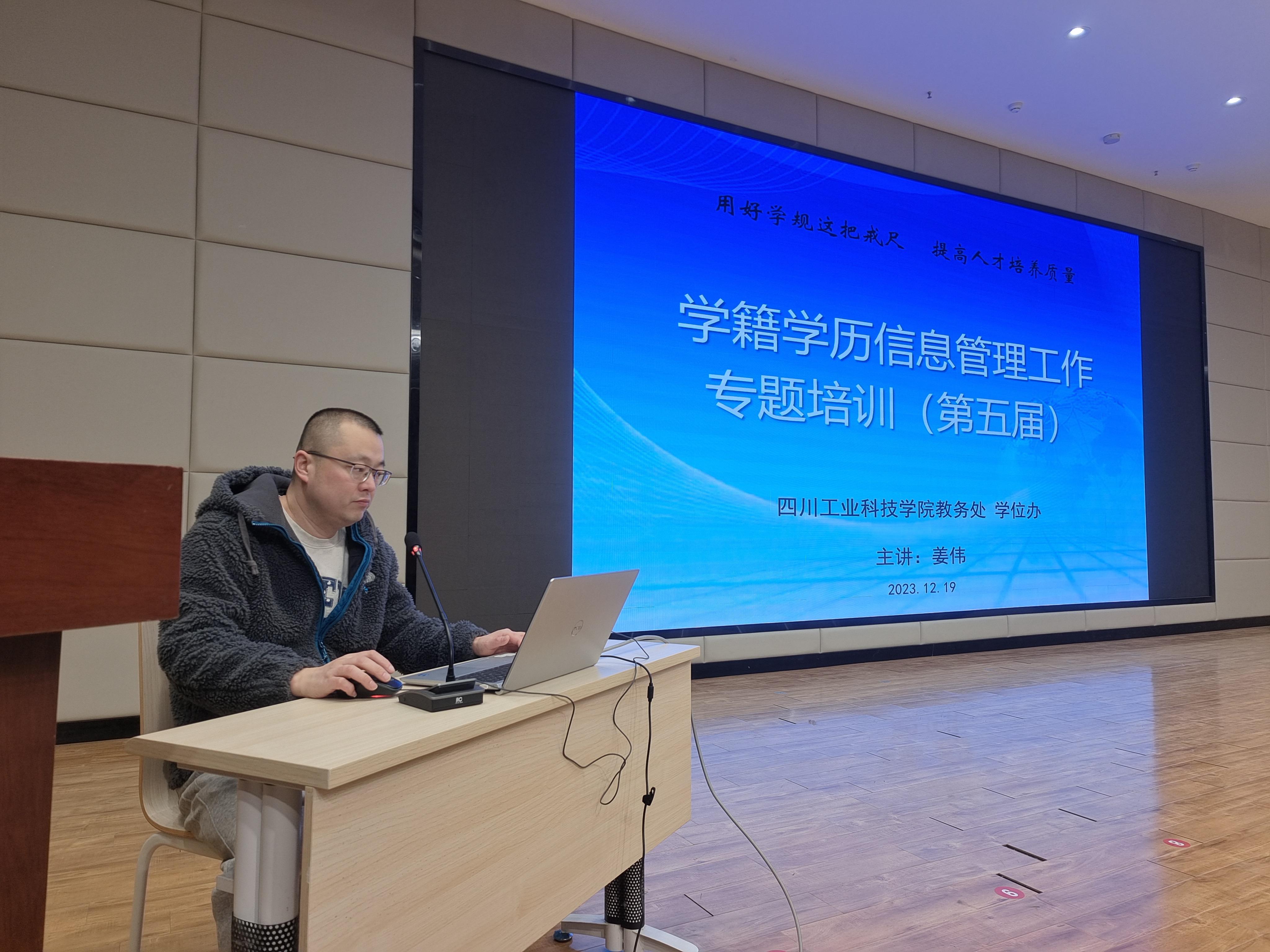 为使学校教师全面了解学籍管理相关规定,规范学生行为,促进良好学风建设,12月20日下午,学校在龑江C区报告厅开展了以“用好学规这把戒尺,提高人才培养质量”为主题的培训。本次培训由教务处学位办主任姜伟主讲,各二级学院教学办主任、辅导员参加了此次培训。