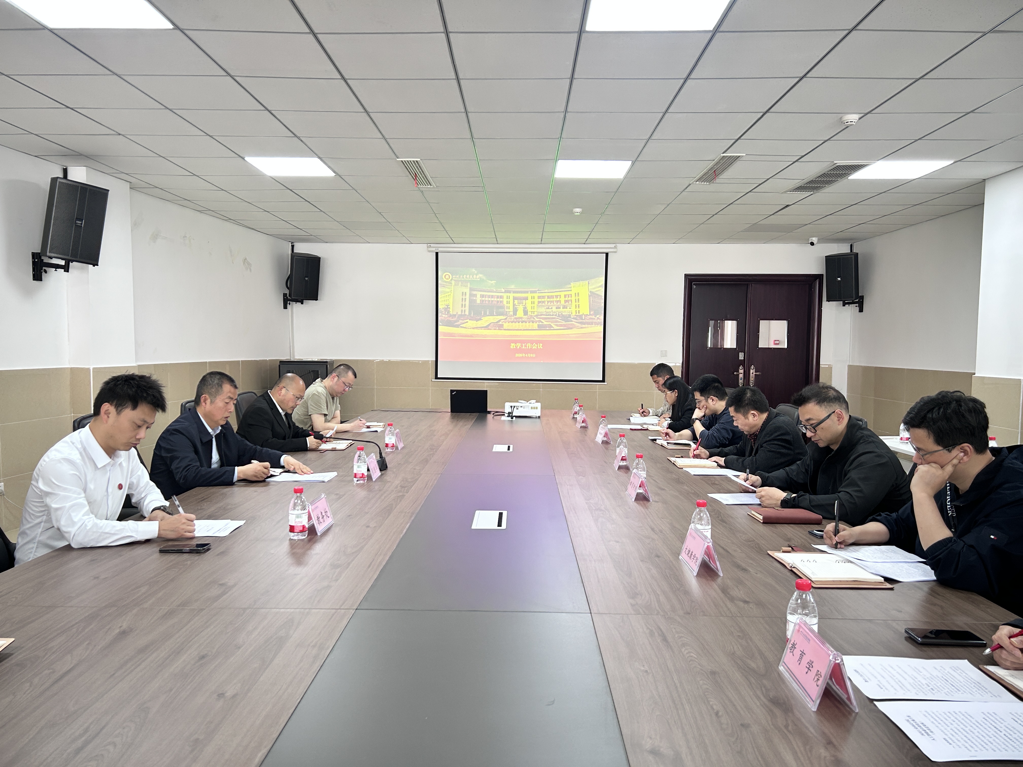 会上,教务处相关负责人依次汇报了近期重点教学工作的推进情况。在教学运行方面,重点提到了开课计划制定、教材征订、期末试卷命题等工作,确保各项教学环节平稳有序推进。在学籍与学位管理方面,重点提示了2026届毕业生相关事宜,包括成绩录入、答辩组织、材料归档等环节,进一步规范本科毕业管理流程。在实验实训与产教融合方面,详细介绍了2026年省级校外实践教育基地立项建设情况,并拟将校外实践教学基地建设、产教融合项目等纳入职称评审认定范围,以激发教师参与实践教学改革的积极性。在内涵建设方面,明确了2026年校级教改课题申报与结题的关键时间节点,介绍了校级“智慧”课程立项申报的启动工作,鼓励各学院提前做好相关材料准备。在教师发展方面,依托超星“师享汇”“直播讲堂”等培训平台,持续助力教师队伍专业教学水平稳步提升。在督导评估方面,通报了同行教师听评课开展情况,并提前部署相关专业自评报告及支撑材料的准备工作。