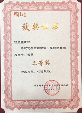 热烈祝贺我校钟全能教师获得四川省第一届移动教学大赛三等奖