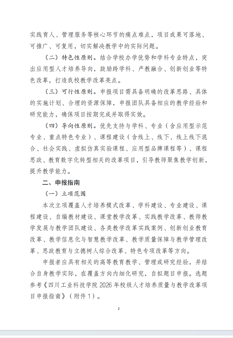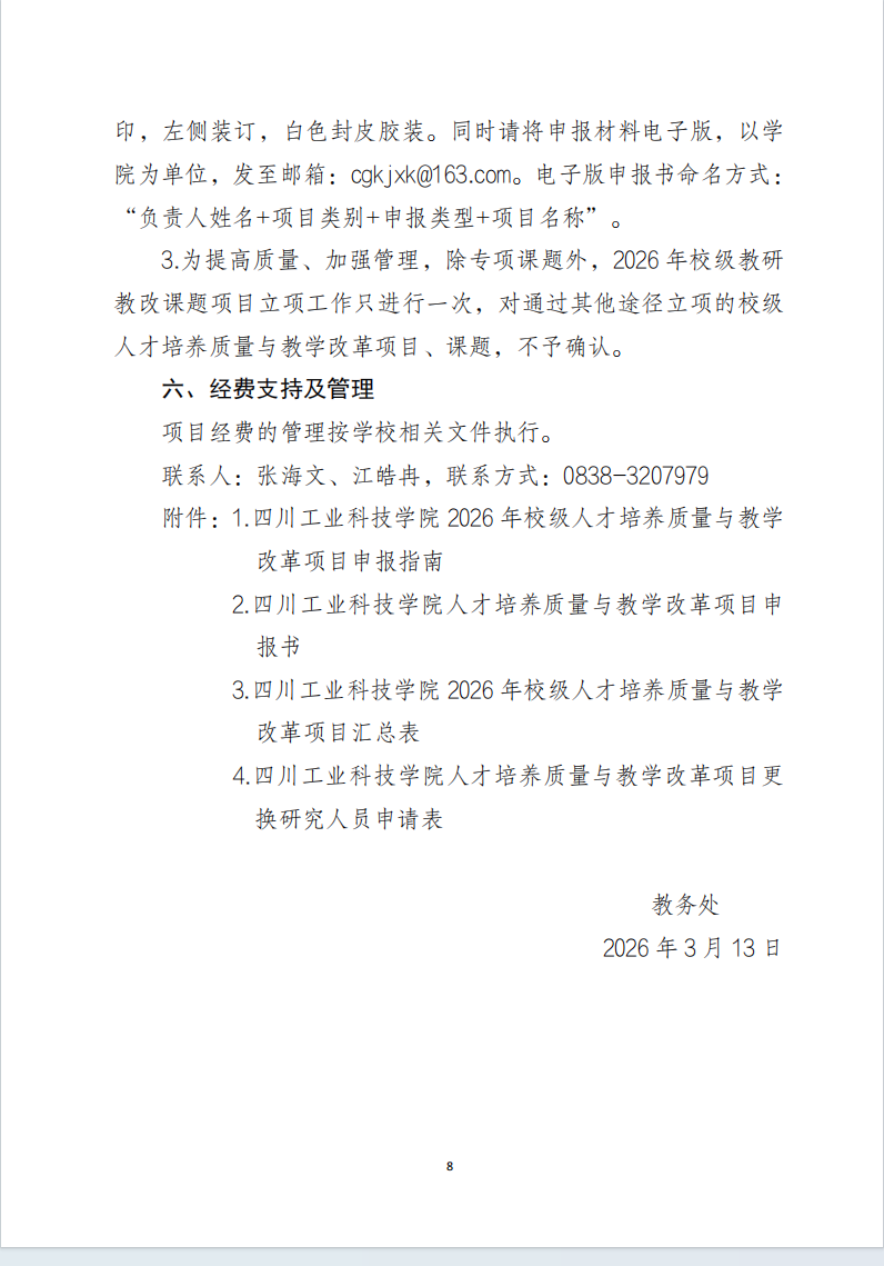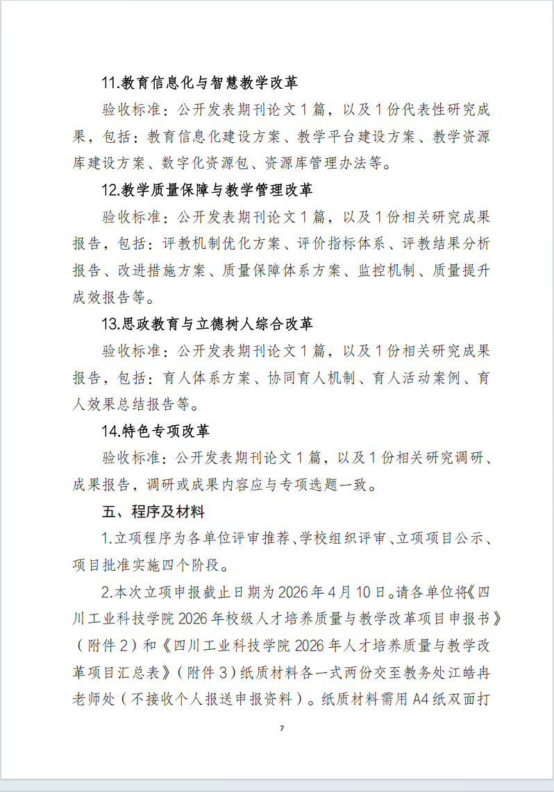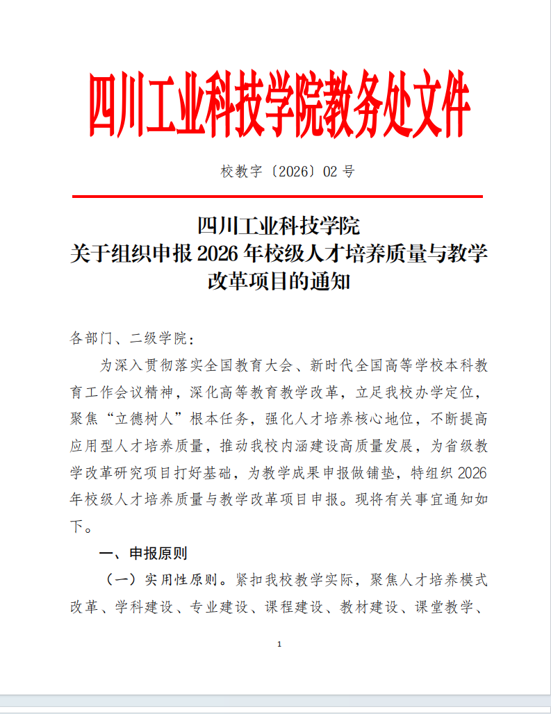四川工业科技学院关于组织申报2026年校级人才培养质量与教学改革项目的通知