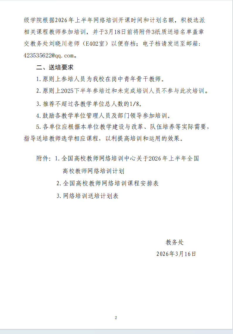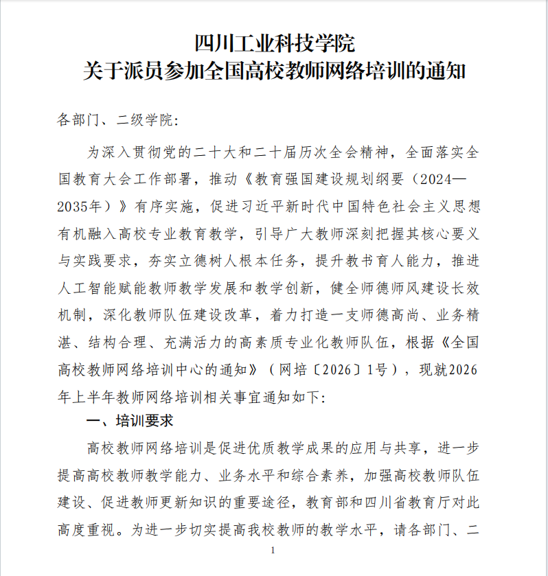 四川工业科技学院关于2026年上半年派员参加全国高校教师网络培训的通知