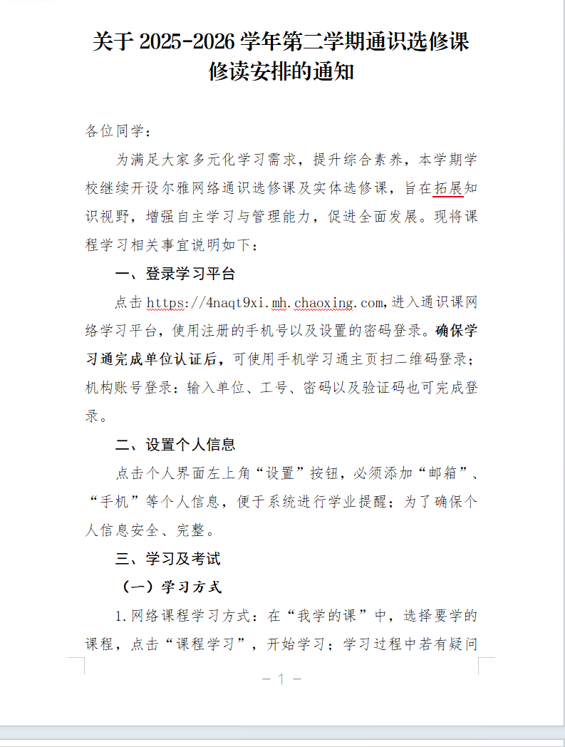 关于2025-2026学年第二学期通识选修课修读安排的通知