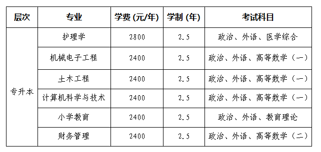 (一)专升本(除护理学)2400元/生·年,护理学2800元/生·年,按2.5年收取。