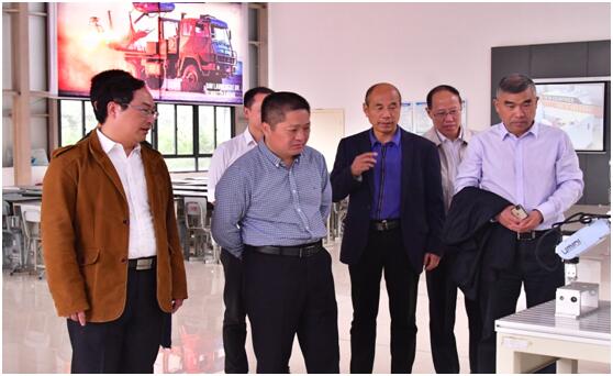 考察组一行在学校副校长倪雨以及相关职能部门负责人的陪同下考察了学校智能制造与车辆工程学院、管理学院、电子信息工程学院的实验实训中心(室)。
