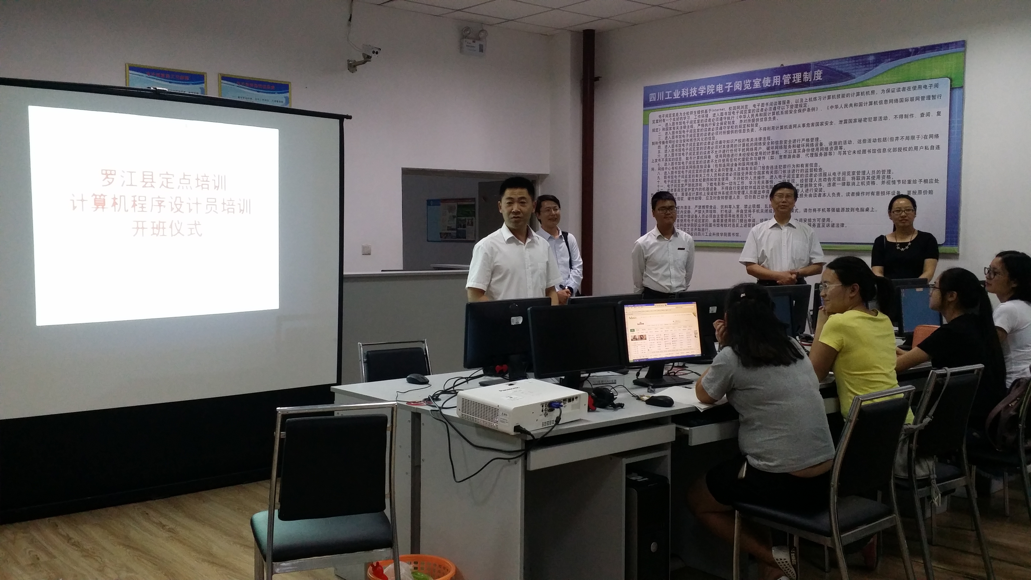 5月18日,罗江县定点培训程测量员和计算机程序设计员职业技能培训开班典礼先后在学校408会议室和电子阅览室召开。罗江县人力资源和社会保障局主任杨保刚、罗江县就业局主任顾明彦、学校副校长郭桂萍、学校职业技能鉴定所所长周文、建筑工程学院罗运辉院长、电子信息工程学院副院长龙厚彦出席会议,培训指导老师和150名学员先后参加了开班典礼。