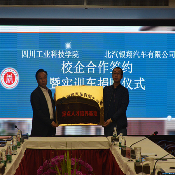 4月25日下午,交通学院与北汽银翔汽车有限公司校企合作签约暨实训车捐赠仪式在图书馆会议厅隆重举行。北汽银翔有限公司人事行政总监罗涛、重庆纪创教育服务有限公司总经理屈建华、重庆纪创教育服务有限公司总监刘婷婷、四川芙铭实业有限责任公司常务副总经理,学校理事会办公室主任何义兴、交通学院院长何忠国等领导出席了此次签约仪式。签约仪式由交通学院副书记杨政主持。