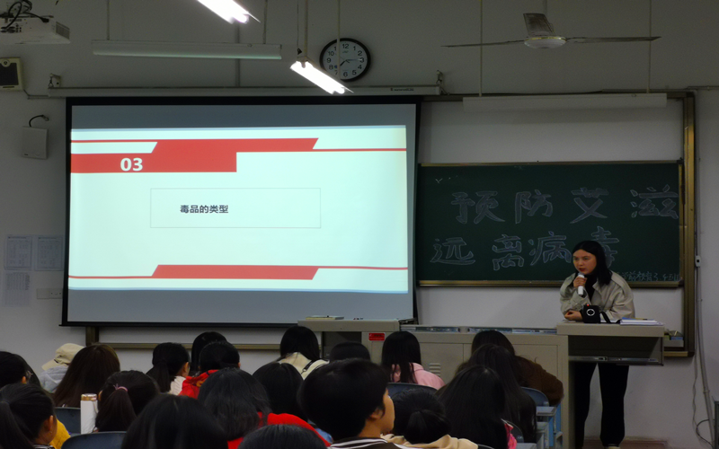 11月3日,教育学院学前教育19级3,4班,在钟灵楼开展“预防艾滋,远离毒品”班会活动。此次活动由3班团支部书记马林雨主讲,三班、四班全体同学参与