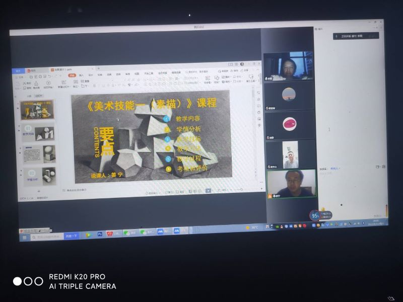 8月12日,美术教研室根据学院8.8教学工作会议安排,利用腾讯会议视频直播间,开展为期三天的说课视频直播,时间安排是8月12、13、14日晚上20:00至21:00,每位老师说课限30分钟,美术教研室所有任课老师轮番上阵,要求做到人人说课,反复说课,老师们各自展示自己的说课内容,说课技能,认真做好学院迎评促建前的磨合过程。视频直播间,吴节义院长应邀出镜,并作出以下教学指导:一是要认真领会说课与磨课的本质与要求;二是对应下学期迎评期间所任课程,重点打磨相关课节;三是美术课程要突出技能性、实操性和实用性。