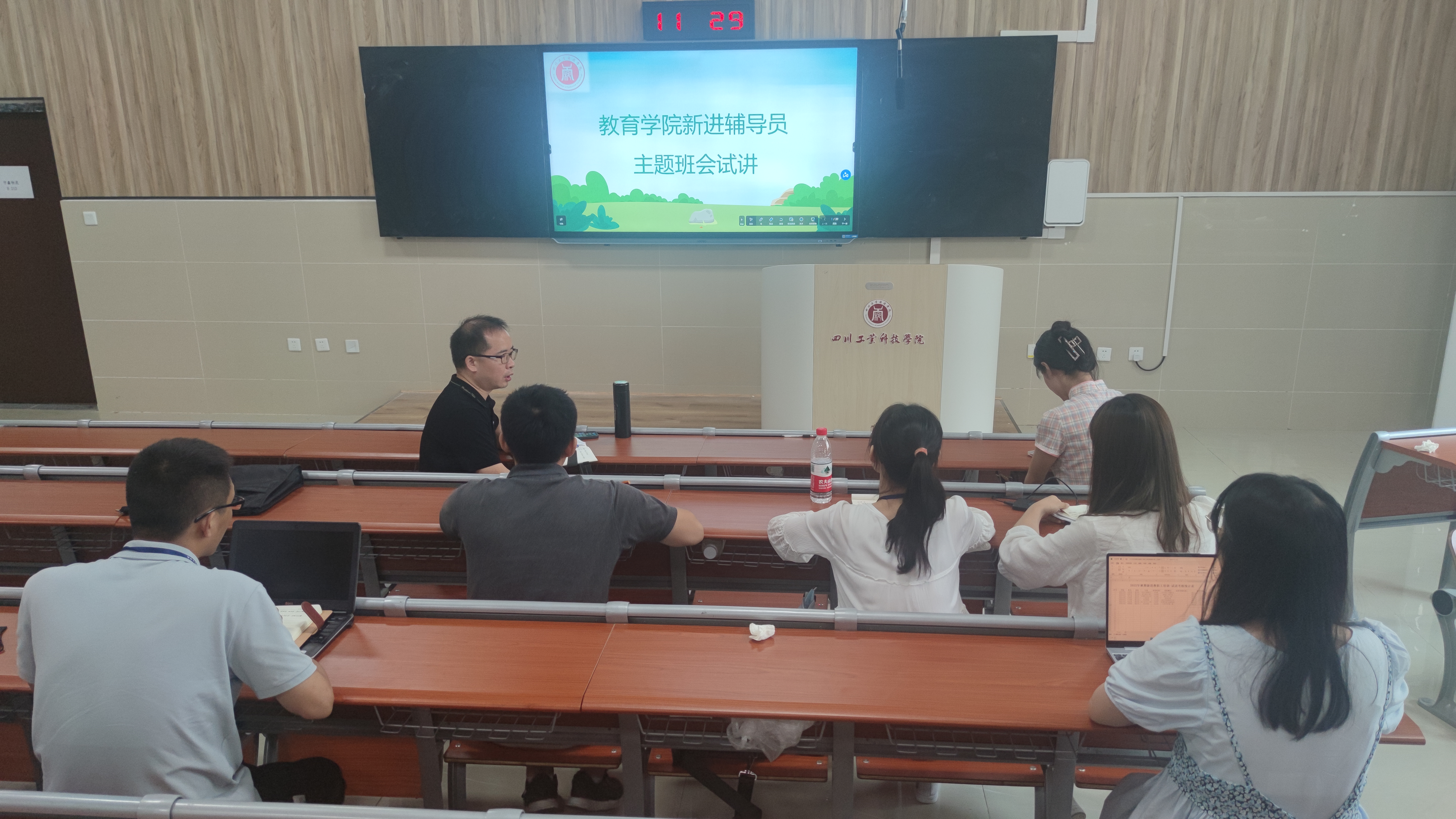 本次试讲活动各位辅导员老师高度重视,准备充分,展现了较高的基本素质和较强的口语表达能力,班会课内容设计合理,教资教态得体,同时能够准确把握重难点以及学生心理,展现出良好的状态。