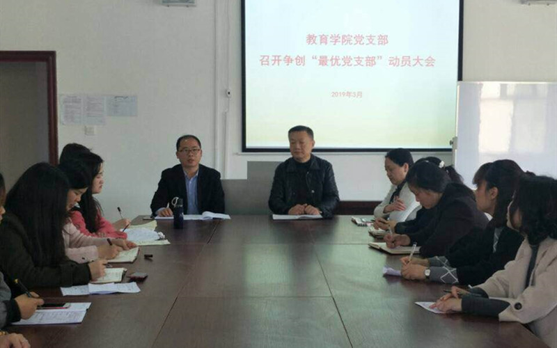 为深入学习贯彻党的十九大精神,推进学校支部建设制度化、规范化、科学化,不断提高支部建设质量,根据学校“最优党支部”创建工作要求,3月28日下午,教育学院党支部召开争创“最优党支部”动员大会,部署系统创建工作。党支部书记熊定永及支部全体党员参加会议,院长吴节义、副院长孙红英及非党员教职工列席会议。