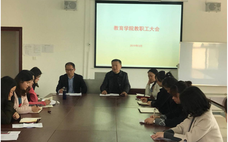 3月28日下午,教育学院召开教职工大会。院长吴节义、党委书记熊定永、副院长孙红英及全体教师参加会议。