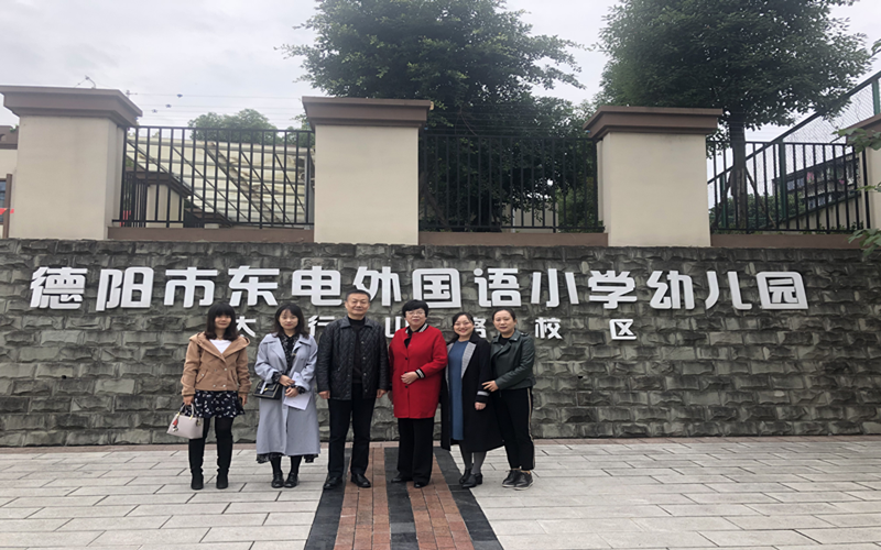 2019年11月1日上午,教育学院院长吴节义、教学办主任徐伟、学前教研室主任唐丹丹和学前教育专业课教师李婕一行到德阳市东电外国语小学幼儿园考察交流。