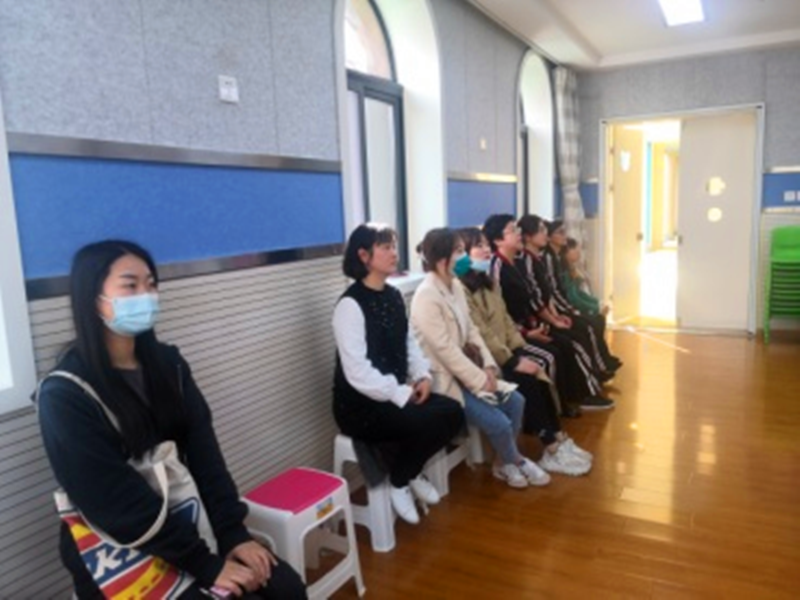 见习伊始,学工办主任黄译漫带领教师和班级同学进入园区熟悉环境,幼儿园教师对同学们开展了培训讲座,同学们通过培训知道了要成为一名合格的幼儿教师需要具备的条件以及了解到在幼儿园见习一天的工作安排和流程,培训结束后同学们分组进入各班级进行见习。