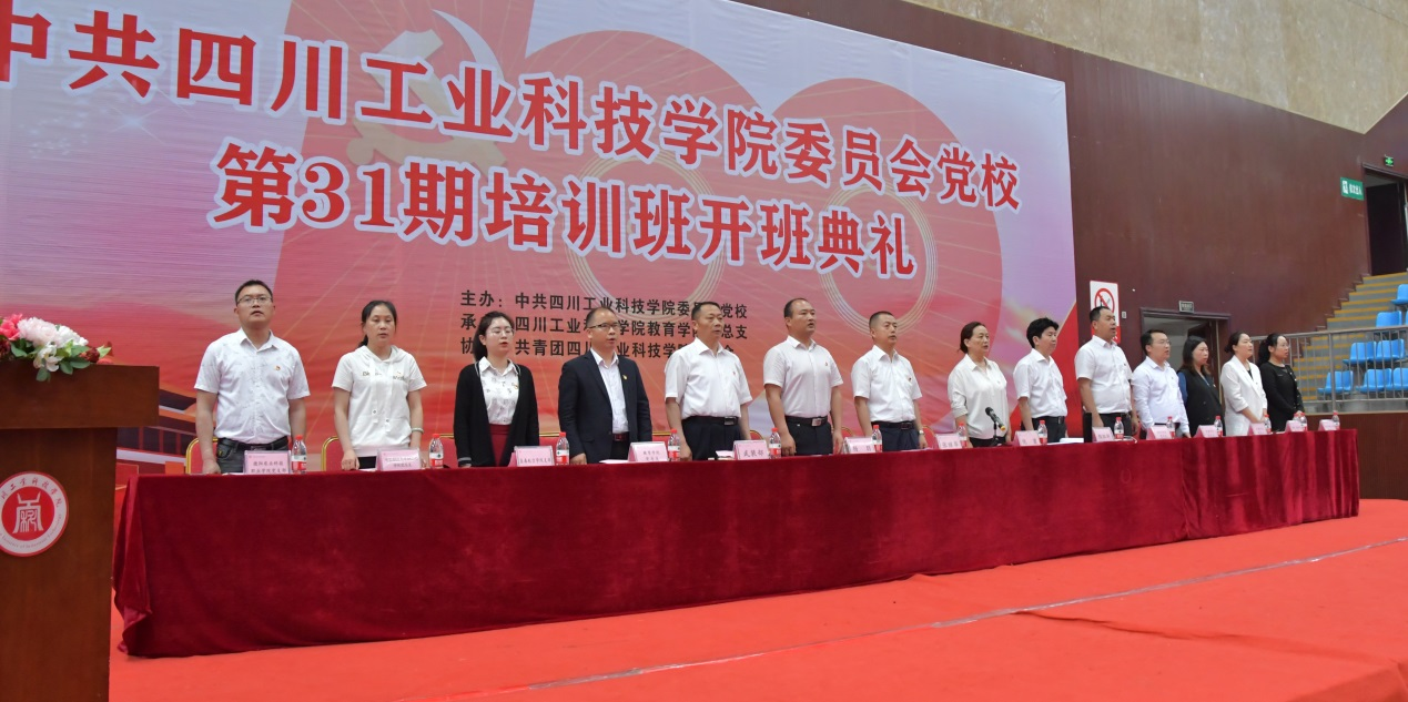 5月10日下午,四川工业科技学院第31期党校培训班开班典礼在学校罗江校区体育馆顺利举行。本次开班典礼由中共四川工业科技学院委员会党校主办,教育学院党总支承办。学校党委书记张继华、党委各部门负责人、各党总支和直属党支部书记(副书记)、各二级学院学工办主任和团总支书记、第31期党校全体学员参加了开班典礼,党委副书记、纪委书记倪霞主持了典礼。