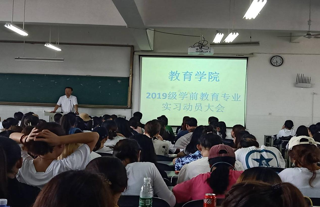 为强化专业实践技能,保障教学实习工作顺利开展,促进同学们更清晰地认识和适应专业职业岗位,教育学院于7月20日在毓秀楼305召开了2019级学前教育专业实习动员大会。院长吴节义、党总支书记熊定永、副院长孙红英、相关班级辅导员及2019级1-6班全体同学参加了大会。会议由学工办副主任黄译漫主持。