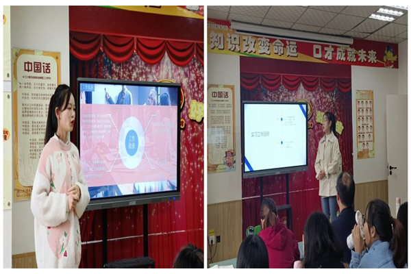 在神墨教育学堂,刘慧、杨加燕、仲柏羽三位实习同学分别就实习以来的各方面情况作了汇报,包括工作总结、优缺点反思、改进措施、下步工作计划等,谈了自己的深刻认识。汇报后,几位同学各自的指导老师均认真进行了点评,指出了大家的优点和需要改进的地方。随后,熊定永谈到,从大家的汇报可以看出,经过两个多月的实习成长很快,进步明显,从教态、语言表达、教学组织等各方面“已经初步具有一名老师的样子”,同时勉励大家要发扬优点,认识不足,找出问题及时改进,不懈努力成长为一名合格乃至优秀的幼儿教师。