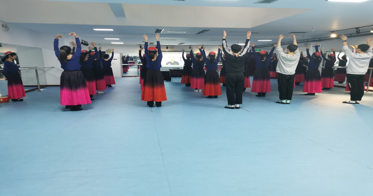 老师因疫情居家隔离,不能到教室教学,针对此种情况,我们采取的是学生到教室上课,老师通过线上直播的形式教学。这些课程中,舞蹈课有其自身的特殊性,需教师大量示范动作,因此教师通过腾讯会议教学,一方面便于学生学习,另一方面便于教师掌握学生学习情况,及时纠正和整改。