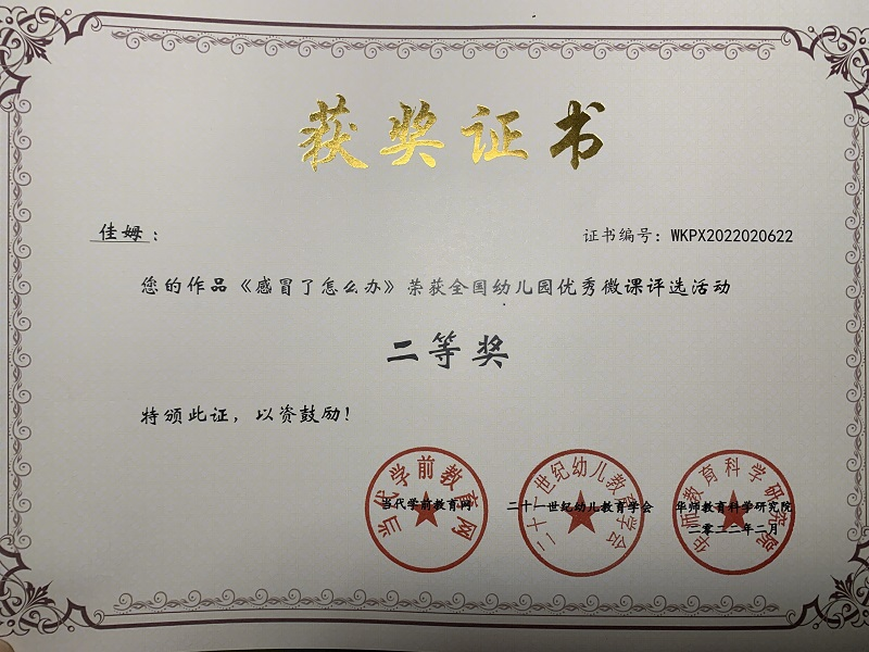 一分耕耘,一分收获;砥砺前行,收获满满。2021年寒假期间举办的“全国幼儿园优秀微课评选活动”中,我院19级杨彩巍、赵国美、罗欣雨、20级学前教育专业张慰欣、喻欣、徐雨、佳姆7位同学利用寒假时间,在我院专职教师曾雪老师的指导下,同学们不断打磨教学设计、试讲水平,最终佳姆、罗欣雨荣获二等奖 张慰欣、喻欣荣获三等奖;赵国美、杨彩巍荣获优秀奖。
