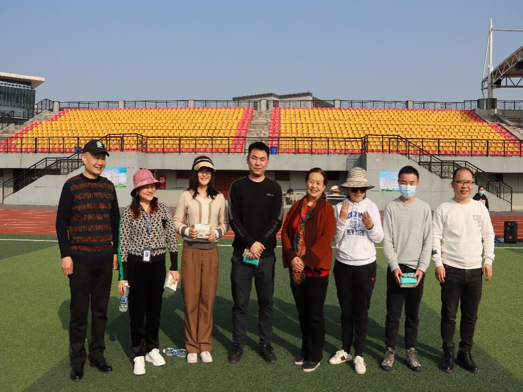 本次趣味活动包括三项游戏活动。首先进行的事“跳袋鼠”比赛,老师与学生各成一组,每组五人。游戏中,老师和同学们都穿上袋子跃跃欲试,像三月的暖阳一样充满活力与朝气。随着裁判李印平老师的一声令下,大家都奋力地蹦向终点。在激烈的角逐下共有四位老师和两名学生取得名次,吴节义和熊定永为他们颁发了纪念品并合影留念。随后进行的是是“打地鼠”游戏,由老师与学生分别组成十三人队伍进行比赛,最后教师组一马当先,摘取了胜利的果实。最后开展的是团队配合度极高的“车轮滚滚”,该比赛分为四组,每组五人,两两进行比赛。首先是教学组的老师和学工组的老师进行比赛,两组老师配合的都十分默契,最终教学组以一步险胜学工组。紧接着是学生组与教师组的较量,各组的成员都充满了干劲,教师组以微弱的距离惜败。但游戏的输赢并不重要,重要的是参与的过程,不管是学生还是老师都全身心的投入到了活动当中去,每个人的额前流出的汗水,便是快乐放松的见证。