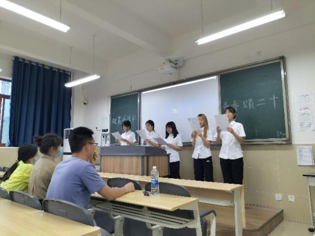 为迎接党的二十大顺利召开,引领广大青年学生爱党爱国。5月11日,教育学院于10栋109教室开展了以“翰墨抒情怀,青春颂二十”为主题的诗歌朗诵比赛,活动邀请到了颜富云、艾美琳、谭静等教师担任比赛评委。