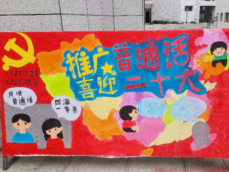 为全面贯彻国家语言文字法律法规和方针政策,积极引导全校师生树立科学的语言观,增强师生说好普通话,写好规范字的意识,提高师生国家通用语言文字的应用能力,积极营造喜迎党的二十大胜利召开的浓厚氛围,全国第25届推广普通话宣传周期间,我校开展了以“推广普通话 喜迎二十大”为主题的推普周系列活动,让“说普通话,写规范字”在校园内蔚然成风。