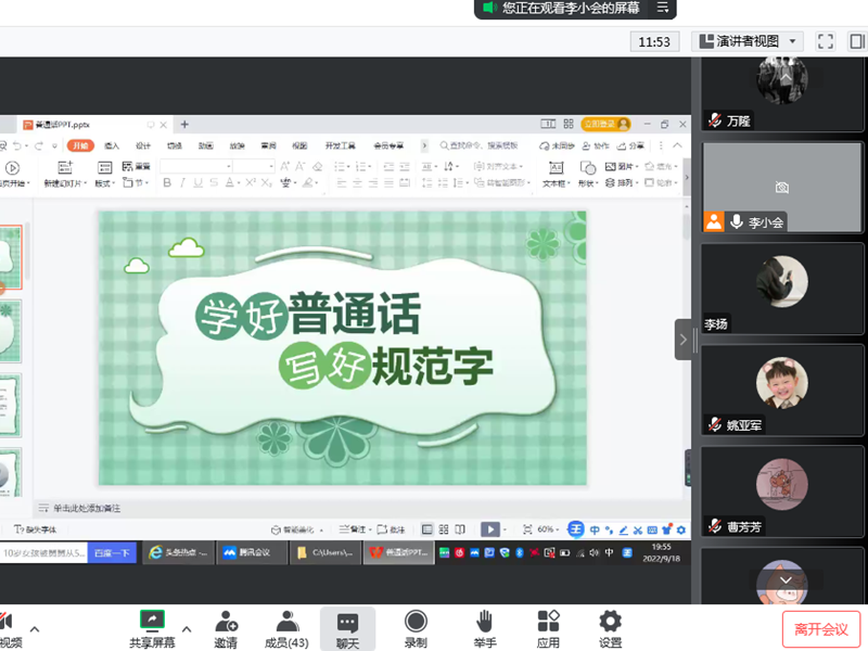 2.学工部高度重视推普周工作,积极制定推普计划并召集各二级学院学工负责人召开了推普工作动员会,倡议全校各班开展以“推广普通话,喜迎二十大”为主题的班会教育活动,并要求在班会中,播放大学生语言文字推广中心的师生拍摄的推普周宣传视频。这一举措极大的加强了推普周的宣传力度,让说普通话、写规范字深入人心。
