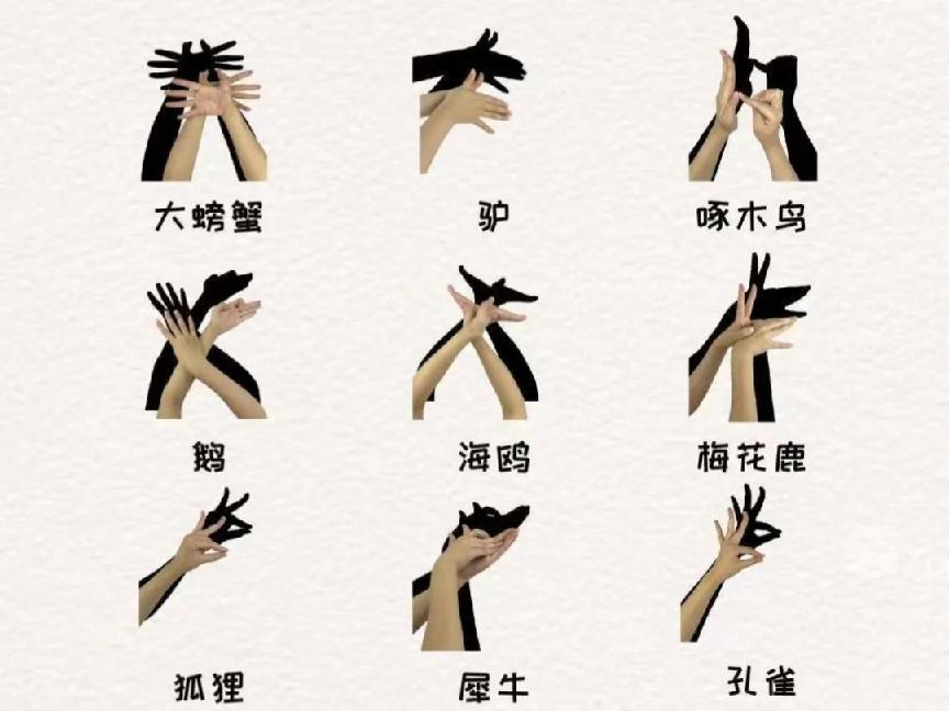 手影是延续历史悠久的一种经典游戏,它将艺术和游戏融合,通过随意的手势投影,幻化出各式各样的人物或动物形象。天上飞的、地上跑的、水里游的,现实的、想象的,神话的,各种栩栩如生的手影,不仅可以锻炼幼儿的的动手能力,还能发掘他们的创造力和想象力。