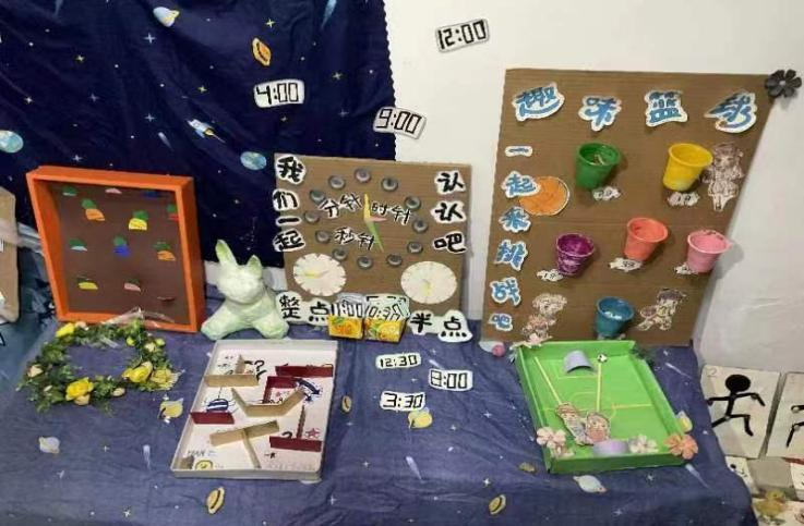 映入眼帘的还有可爱鲜艳的桌面游戏。有萝卜箱、小猪佩奇拼图、消消乐等能够训练幼儿观察手眼协调的立体游戏,甚至还有游戏能帮助幼儿练习垃圾分类。