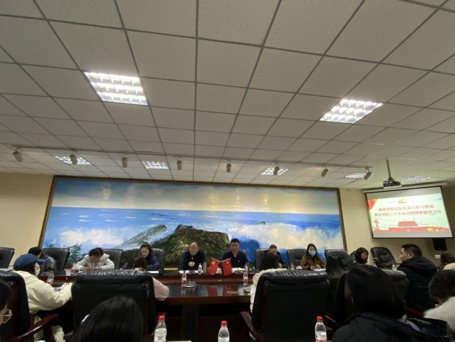 会议最后,教育学院党总支书记何忠国同志再次强调,老师们要把贯彻落实党的二十大精神与当前各项工作结合起来,聚力攻坚,奋勇争先,全面贯彻党的教育方针,落实立德树人根本任务。要持续改进工作作风,激发工作热情,真正把党的二十大精神转化为全方位推动学院高质量发展的不竭动力。