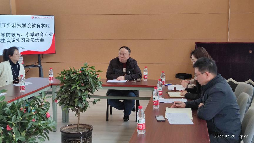 3月20日下午,我院召开了2022级学前教育、小学教育专业学生认识实习动员大会,会议由教育学院党总支副书记曾晓莉主持,学院党总支书记、院长何忠国同志,党总支副书记何彬同志、教学办主任李长福同志、实习实训中心黄译漫同志以及带队辅导员、带队教师参加了此次会议。