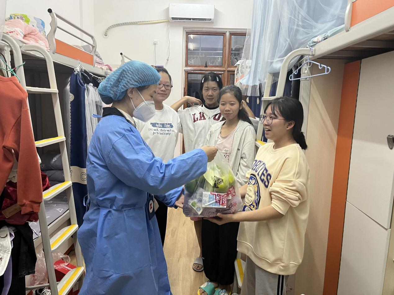 学院安排志愿者把代表着暖心、爱心与决心的慰问物资发放到大家手中,用“小物资”传递“大温暖”,物资的发放以及便利贴上暖心的话语让全院学生感受到了学院的温情。同学们对于这些慰问物资,纷纷表示深深感受到了学院的关怀,一定会做好防护措施,共克时艰。在这个特殊时刻我们要能做到:不为指标波动所慌乱、不为短期变化所干扰、不为困难增多所畏惧、不为外部议论所困惑。