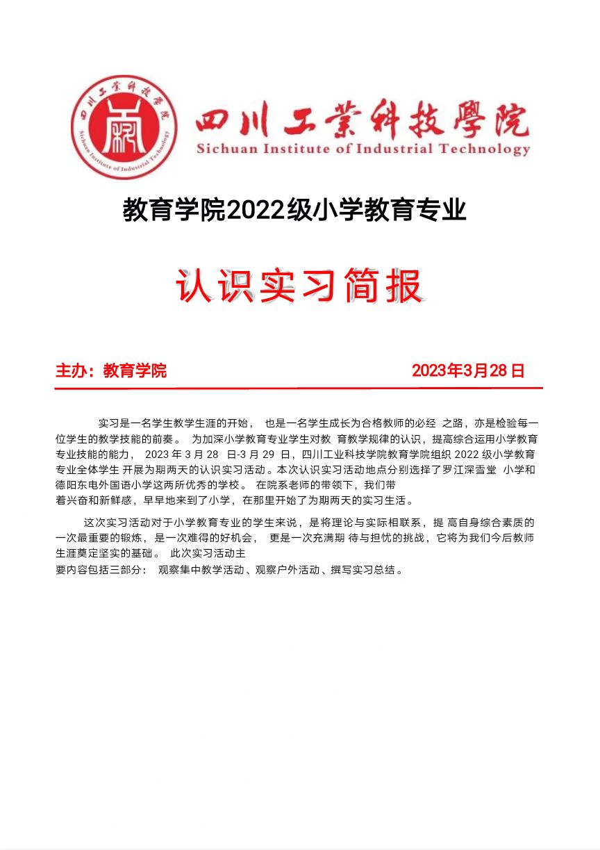 教育学院2022级小学教育4班认识实习简报