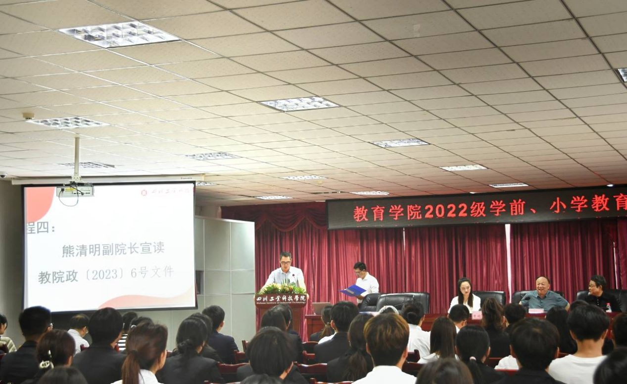 本次大会由教育学院党总支副书记何彬同志主持,四川工业科技学院副校长郭桂萍、教育学院党总支书记、院长何忠国同志、副院长熊清明、党总支副书记曾晓莉同志、各教研室主任、相关指导老师、带队老师及2022级教育认识实习部分学生代表出席此次大会。