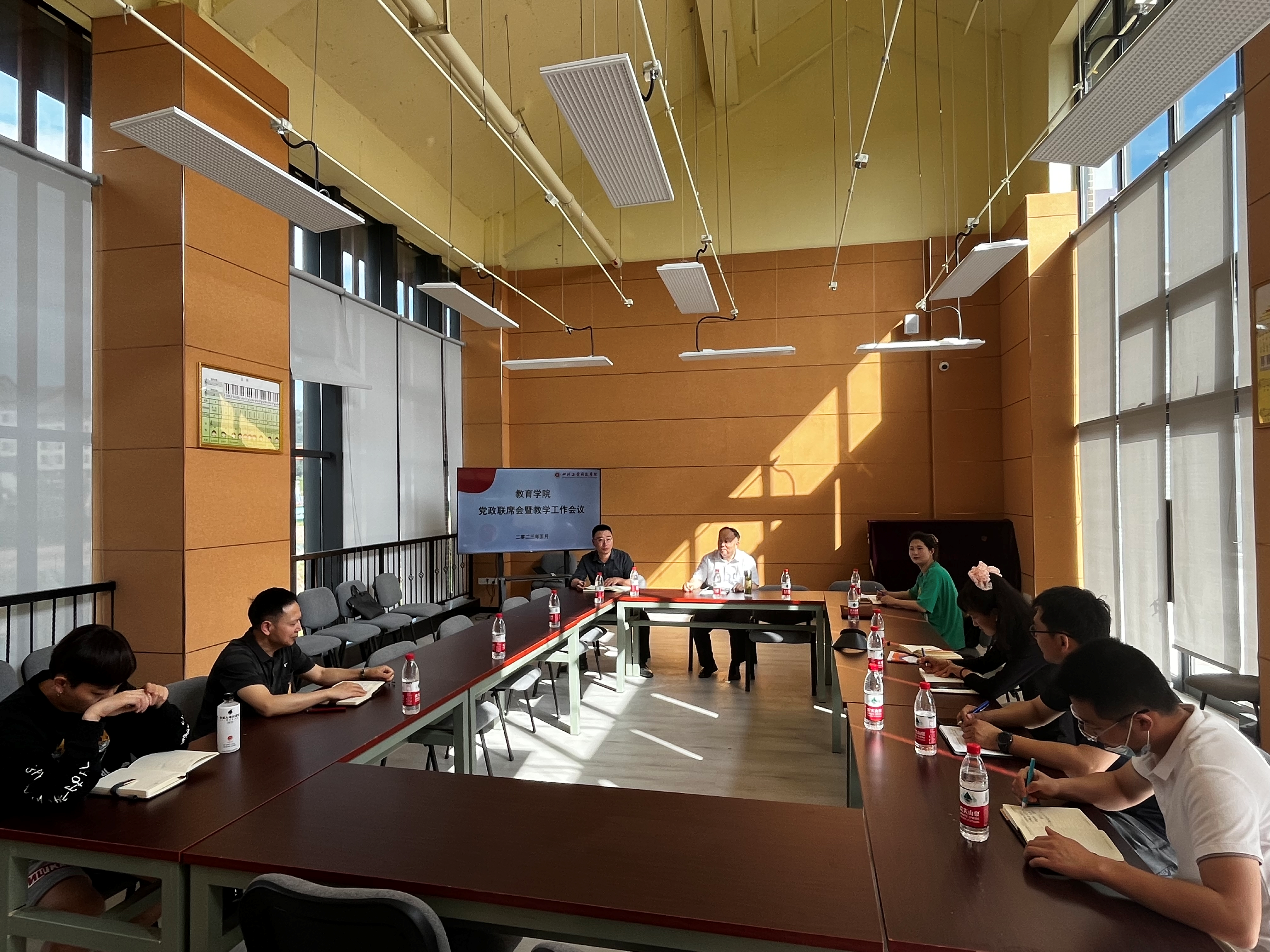 5月18日上午,教育学院于艺术与教学实习(实训)中心B2-4召开了党政联席会暨教学工作会议。会议由教育学院党总支书记、院长何忠国同志主持、副院长熊清明、党总支副书记何彬同志、副科级以上干部及教研室主任参加了此次会议。